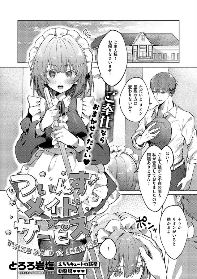しごできメイド・リオンの働きすぎを危惧して、屋敷の主人は新しくメイドを雇うことに。そこでリオンが双子の妹・シオンが新たなメイドとして加わるが、姉に似て優秀かと思いきやシオンは真逆の超ドジっ子だったーー!ある日、ミスをしてしまったシオンは、どんな罰でも受けると言ってご主人のズボンを下ろしはじめ…!?えちえちキュートの新星★ とろろ岩塩先生描くあまあま双子3Pえっち♪