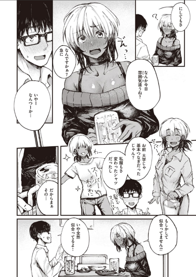 大学時代の後輩と一緒にライブ。終わった後は、ふたりで居酒屋へ。顔を合わせるのは卒業以来。あの頃はツナギとか変わったTシャツばかり着ていた後輩が、大胆な服に身を包み随分と色っぽく見える。特に大きな胸の谷間。これには正直目のやり場に困るけれど、視線が吸い寄せられてしまう。……もしかして、彼氏でもできたのだろうか?なんとなしに聞いたら、突然、彼女は胸元を下げはじめて……!?人気を博したパチンコラブストーリー「大当たり!?」のヒロインの妹が大活躍!!見た目とはうらはらな奥手ちゃんが、お酒の力を借りて猛烈アプローチ!!