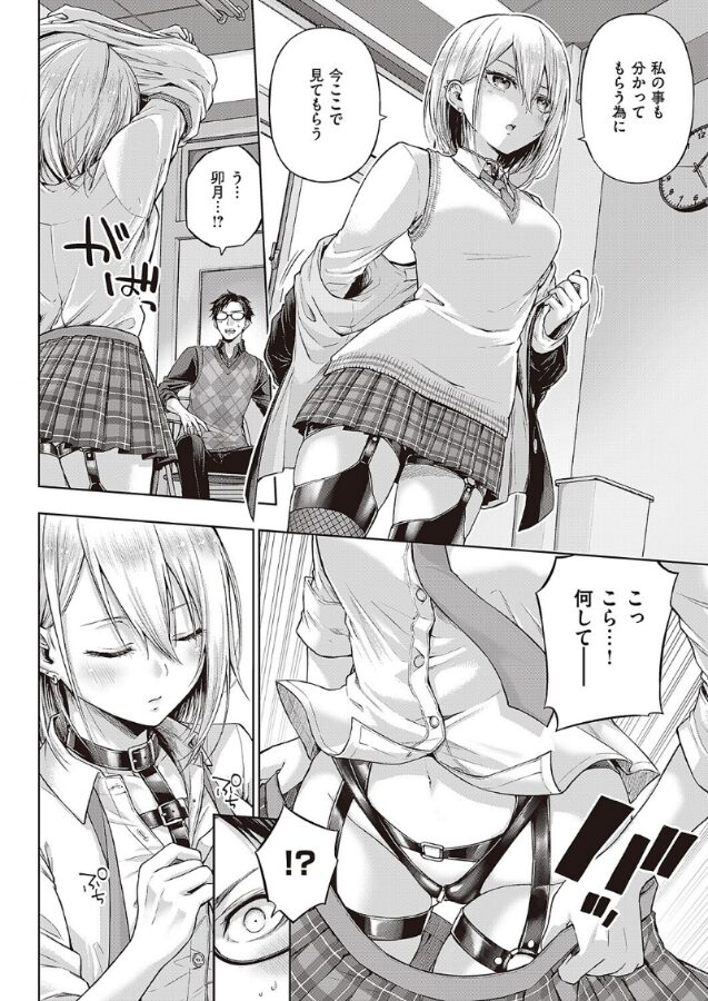 金髪問題児・卯月が過激なボンテージバニー衣装でアルバイトをしていると知った担任・石黒。内緒にしてほしいと懇願する卯月は「今からする先生とのセックスを秘密にしてあげる」と身体を差し出してきて…!?69で「イッたら負けゲーム」を始める小悪魔な卯月にはお仕置きスパンキングで愛のムチ●コを喰わせてやる!ラブもエロも大満足の超新星・メツブシ先生の描く、刺激的すぎる生意気JKを分からセックス♪