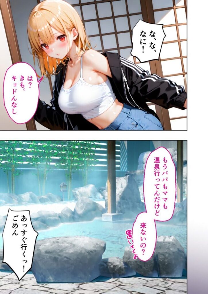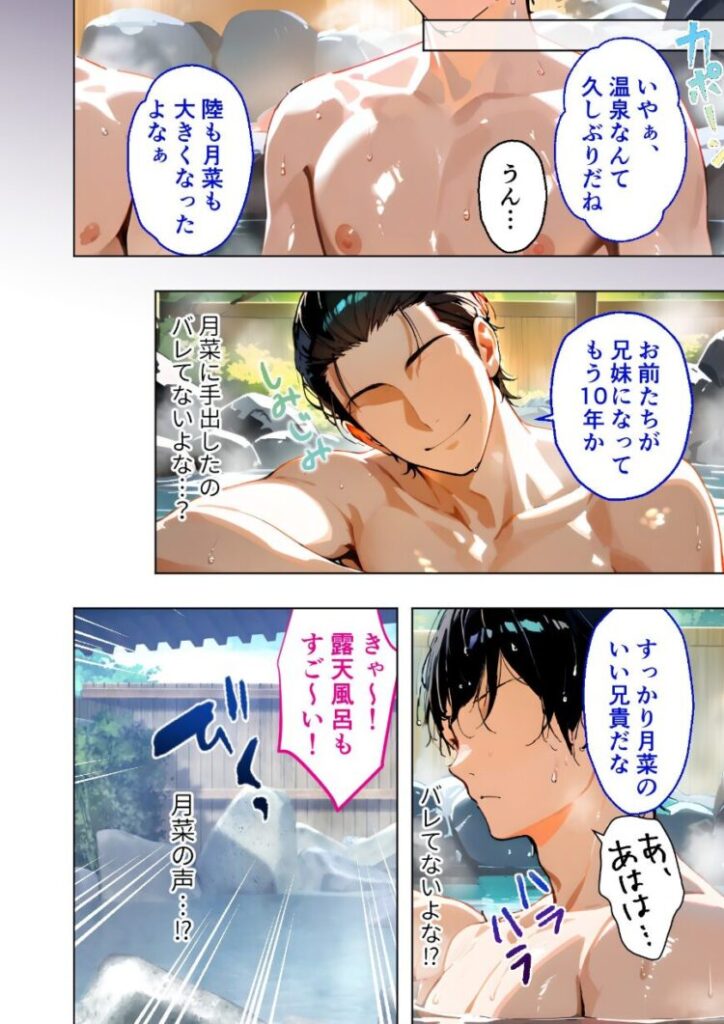 生意気な義妹・月菜(るな)と爛れた関係にある俺は、家族全員で温泉旅行に来ていた。温泉でゆったり過ごす家族団らんのひと時だけど、今までのことを思うと少し罪悪感が――「わ〜!お風呂広〜い!」女風呂から月菜の声が……まずいまずい!エロい妄想すんな馬鹿!「ごめん父さん!先出る!」逃げるように自室に戻り、悶々とする。月菜の尻、胸、太もも……ダメだ!落ち着け!「陸にい?ぼっちで何やってんの?」「るっ、月菜!?」「キョドってんなよきも〜。当ててあげよっか?お風呂でえっちな妄想しちゃったんでしょ?」月菜…!おっぱいが見え…!ダメだって…!家族との温泉旅行中だぞ…!「へ・ん・た・い」絶対ダメだって!コミック45P+おまけイラストページ4P収録!【注意事項】※本作品のシチュエーションは全てフィクションです。登場する人物や設定等は、すべて架空のものとなります。※この作品内に登場するキャラクターは全員20歳以上です。※本作品はStable Diffusionを使用して制作しております。※犯罪、その他違法行為を美化または助長する意図はございません。