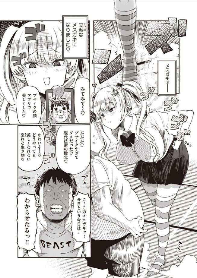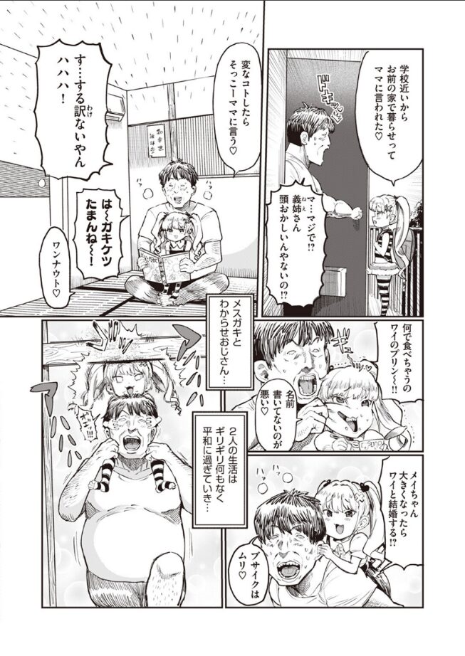 メスガキとわからせオジサンが共同生活!?ギリギリ何もなく日々は過ぎ、すくすくと180cmオーバーくらいに育った芽衣ちゃんは、オジサンとのいつものじゃれ合いでオジサンを窓から突き落としてしまう。幸いにも無事だったがオジサンには不思議な後遺症が残ってしまい……。ハイスピードギャグ×純情エロ、笑って抜ける快作をお楽しみください♪